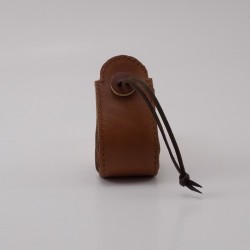 Porte monnaie "bourse" en cuir, fermeture par lacet coulissant et bouton de serrage.